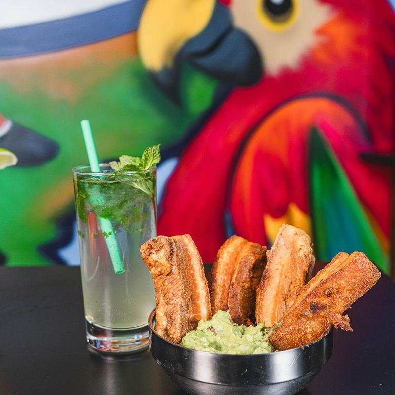 Fried pork belly topped with pickled onion & jalapeños, slaw, pico, marinade, and cheese.